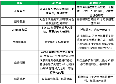 ▲ 表6:AC热备和AC虚拟化对比