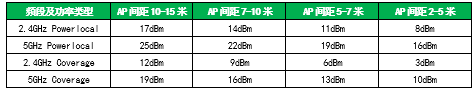 ▲表7:互联网公司大开间办公场景AP初始功率推荐值